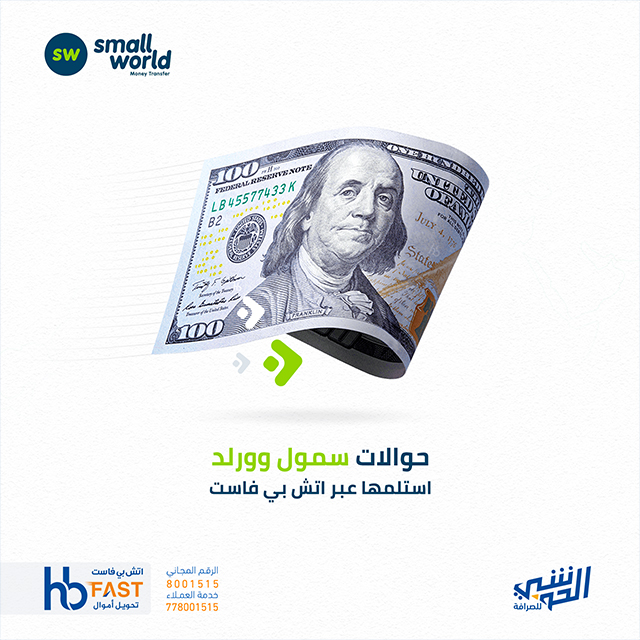 عبر شبكة اتش بي فاست التابعة لشركة الحوشبي للصرافة يتم ارسال وصرف الحوالات المحلية عبر فروع الشركة ونقاط الصرف عبر وكلاء الشركة في جميع انحاء الجمهورية اليمنية.